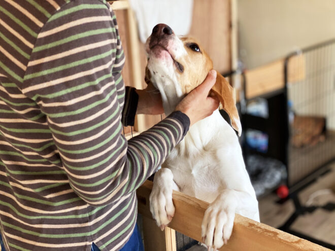 - 花粉が被毛や皮膚につかないよう、散歩の際はウェアを着せてあげましょう。