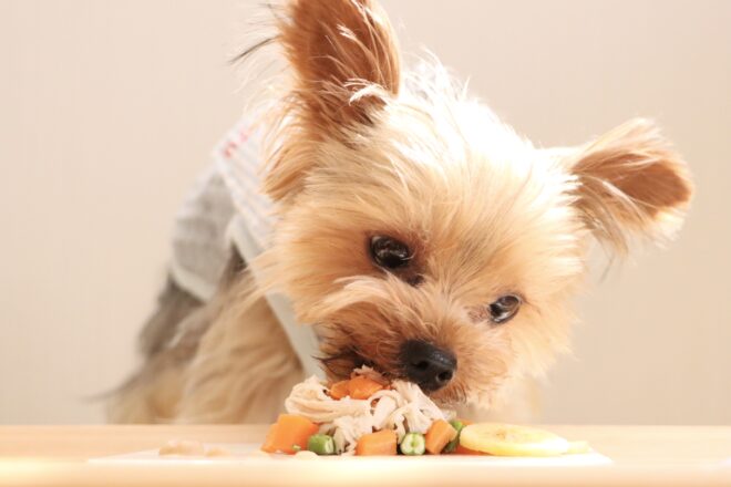 おやつは総摂取カロリーの10%以下に抑え、野菜や果物など、低カロリーのものを選ぶようにしましょう。人間の食べ物は与えないのが基本です。