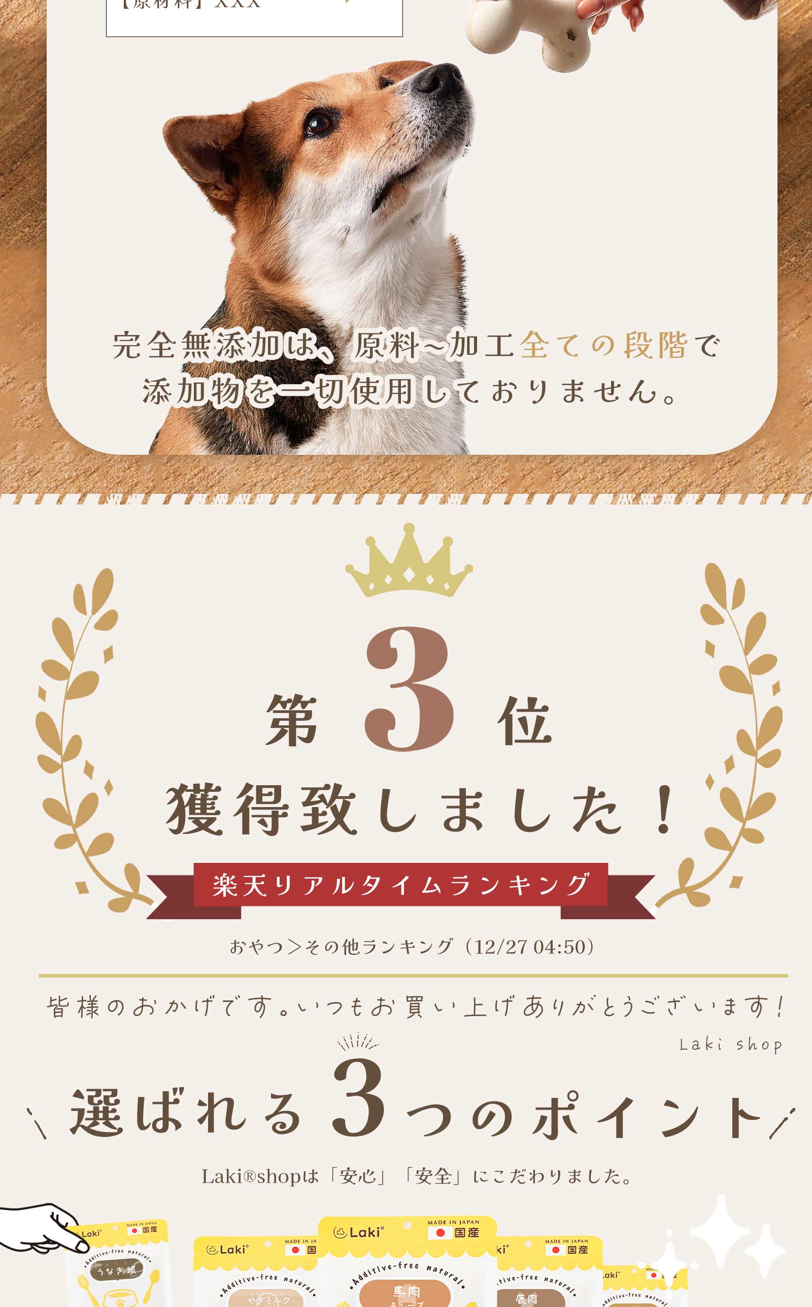 ※おやつは嗜好品です。フードの量に合わせて与える量を調整してください。