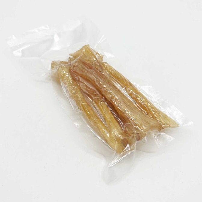 - ※注意事項※硬さが特徴のおやつです。嗜好性が高い為、急いで食べる等丸呑みなどにお気をつけください。与える際は目の届くオーナー様の責任において与えてください。 ※ワンちゃんの性格や食べ方によっては無理に噛み砕こうとしたり、飲み込もうとしたりすることがあります。初めて与える際は手で持ち様子を見ながらしっかり噛ませるようにし、必ずオーナー様の目の届く範囲で与えてください。 ※食べ過ぎにはご注意ください。 ※高温で保管すると油分が出てくる場合が御座います。必ず高温多湿・直射日光を避けて保管してください。